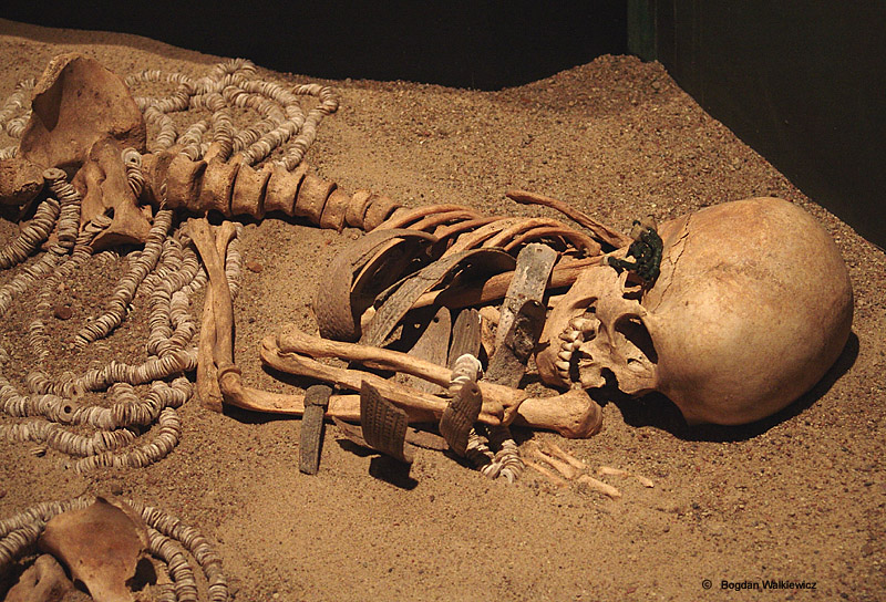 Pochowano w nim 30-letnią kobietę i 7-letnią dziewczynkę. Bogaty strój i wyposażenie obu zmarłych mówi o wyjątkowej pozycji kobiety – Wielkiej Matki - wśród najstarszych społeczności rolniczych, wynikającej z kultu ogniska domowego i płodności.